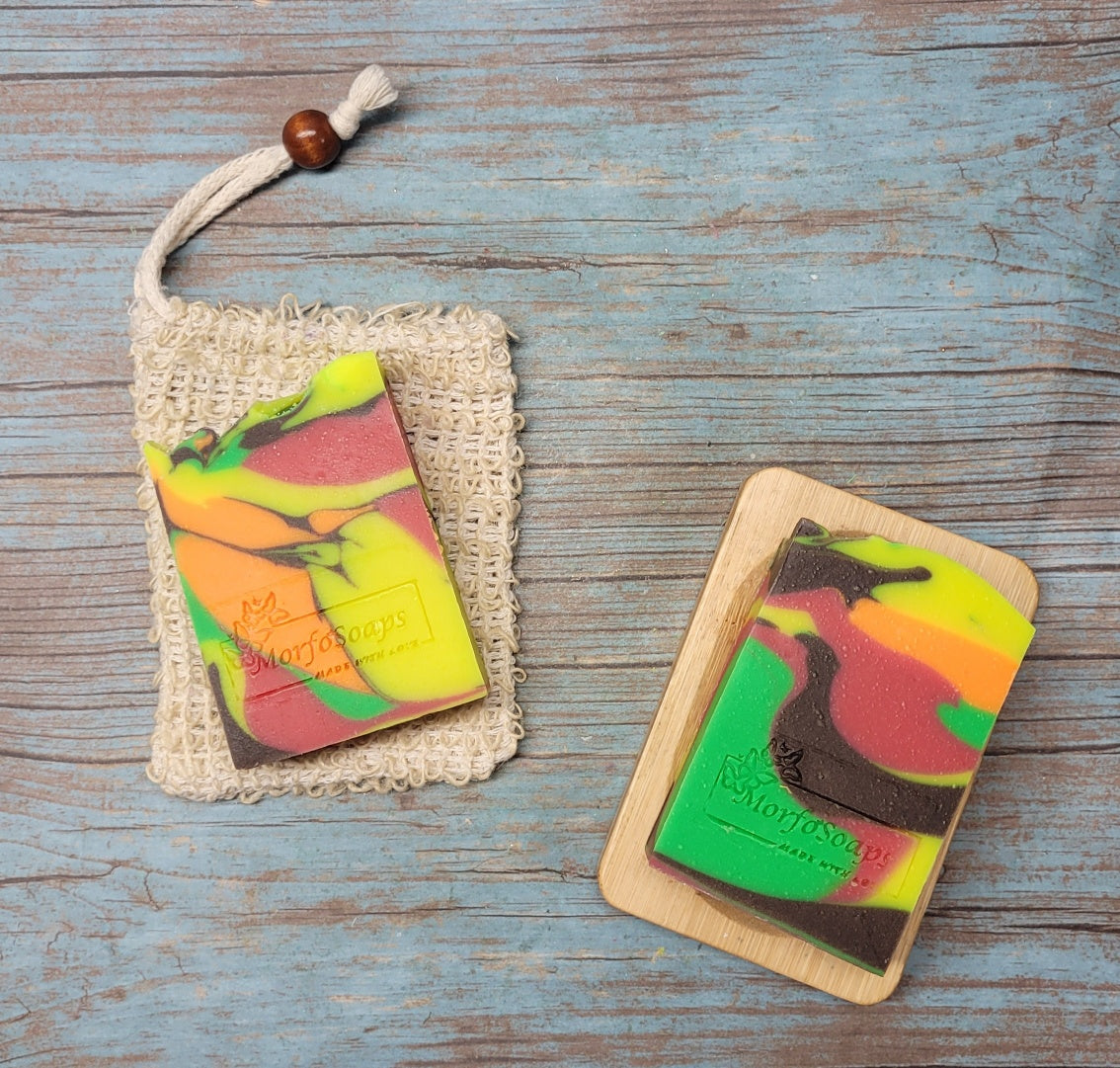 Indulge your senses with the luscious floral sweetness of MorfoSoaps Hibiscus Nectar Soap. This handcrafted bar is a symphony of vibrant scents, featuring juicy peach, crisp red apple, zesty orange, and the delicate bloom of pink hibiscus. A hint of sweet tea, enchanting jasmine, subtle musk, and a touch of sugar complete this intoxicating fragrance.
