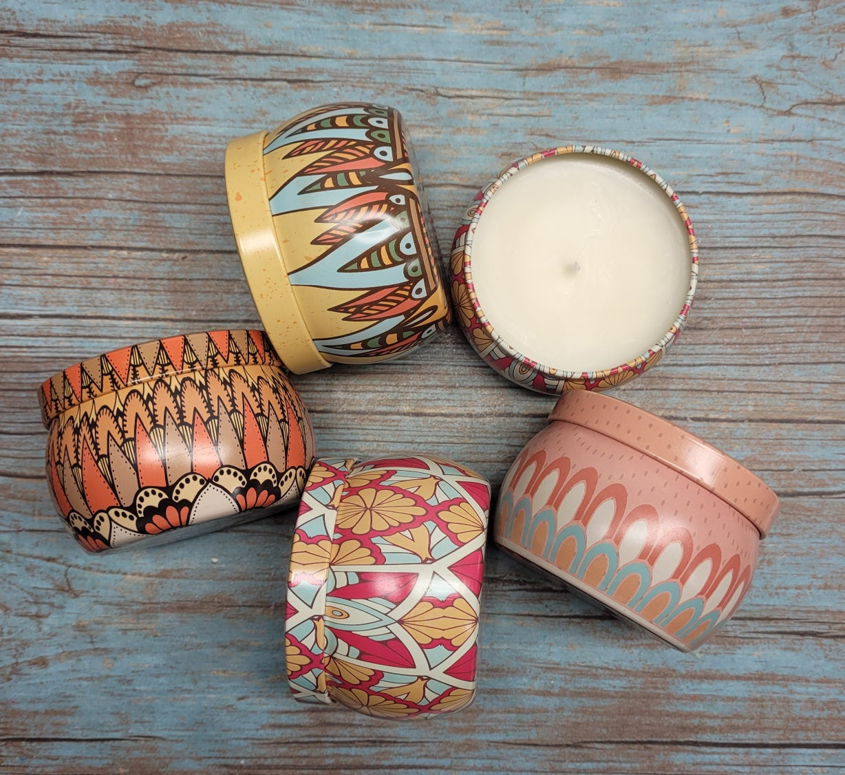 - Colorful tin containers, perfect for gifting or decorating.